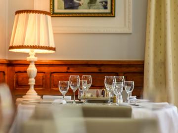 Warmes und ideal gelegenes Hotelrestaurant. Der kleine Balkon ist sehr schön.
