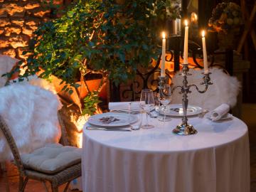 Favourites : Restaurant in the inner courtyard of a 16th-century building. The winter garden with a tree as its centrepiece