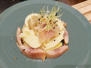 - Sea bream ceviche with mango, Madagascar pepper and tomato and basil ice cream