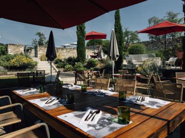 The rooms, bathed in natural light, reflect a spirit of discreet comfort and refinement. They feature noble materials and warm textures that invite relaxation. Some offer views of the surrounding vineyards, enhancing the sense of tranquility. The hotel includes a restaurant where the cuisine expresses the richness of the Burgundy terroir with a creative approach, highlighting seasonal local products in a subtle balance between tradition and modernity.