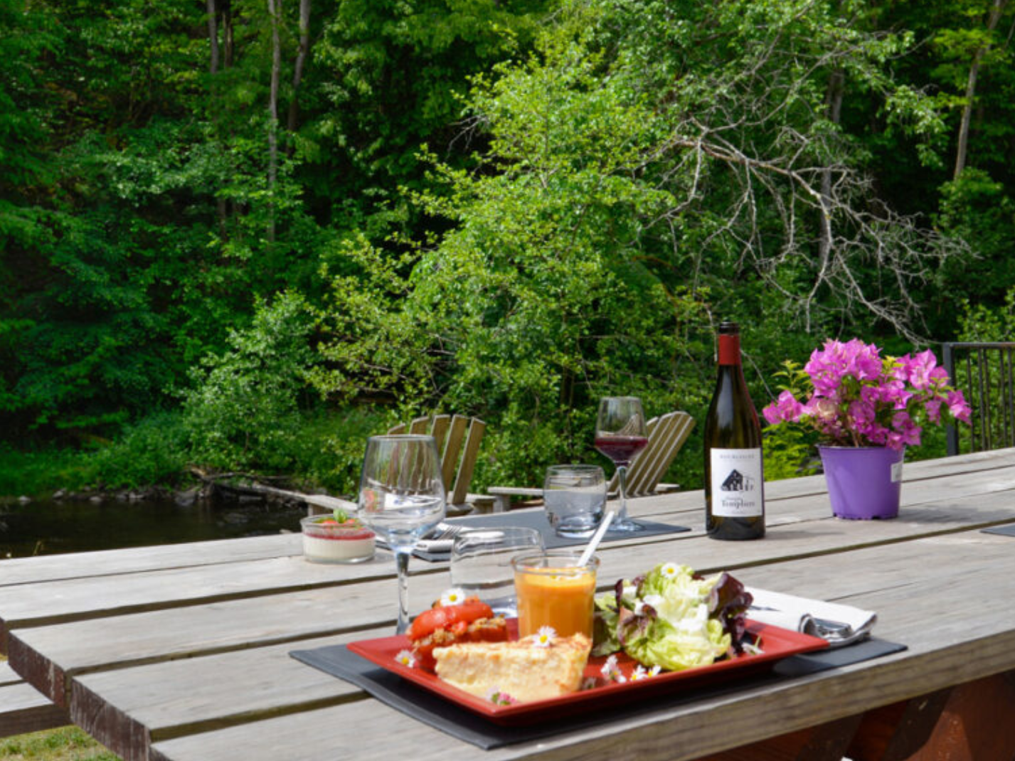 Un hotel en un entorno magnífico con el sonido del río, los pies en la hierba, numerosos lugares para sentarse tranquilamente a leer, echar una siesta o beber una copa de Chablis. ¡Excelente estancia!