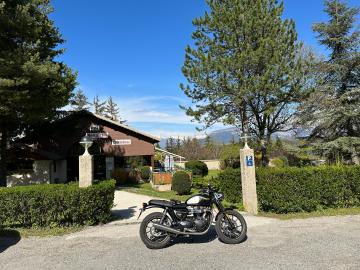 Nos recibieron en el estacionamiento y pudimos estacionar nuestras motocicletas justo en frente de la habitación. Nos pareció genial.