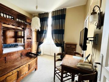 Elegimos un hotel acogedor y un restaurante gourmet Pero el restaurante está cerrado 2 días a la semana a partir de septiembre... y no nos avisaron al hacer la reserva y no nos dirigieron a un colega La habitación sin renovar en este hotel museo ya no cumple con los estándares, habitación muy pequeña, cama también pequeña, ropa de cama que ha vivido en los años El único interés de este antiguo establecimiento es la terraza en la que se desayuna siempre que se esté bien cubierto; Nuestro consejo: tomar una copa allí para descubrir los muebles antiguos
