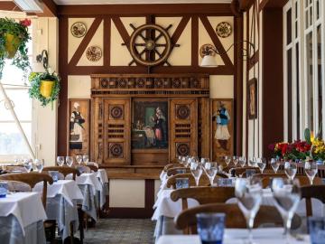 Según la temporada, los platos se suceden con productos frescos y de calidad de proveedores locales. Una cocina regional tradicional que tendrá el placer de degustar en el privilegiado entorno de la sala panorámica del restaurante. Una sala que, con su terraza con vistas al mar, ofrece un magnífico panorama, el escenario ideal para celebrar eventos en un lugar único (con capacidad para 120 comensales). El servicio, prestado con traje bretón, perpetúa la tradición y le invita a viajar en el tiempo. Reducir