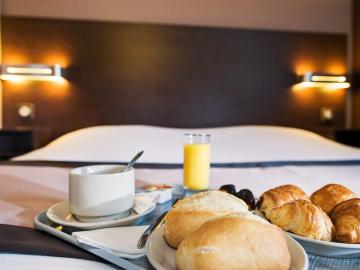 Formule petit-déjeuner, attente 5 mn que le pain décongele du four, salade de fruits en boîte, pas de yaourt à part du fromage blanc et crème dessert chocolat, bref pas terrible pour le prix payé