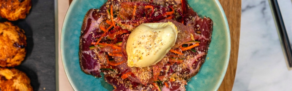 Recette Salade d'oignons doux des Cévennes, et son œuf fermier de Lozère du restaurant l'Adonis à Florac (48)